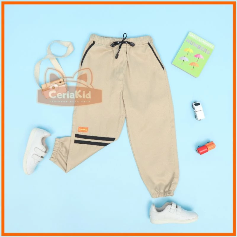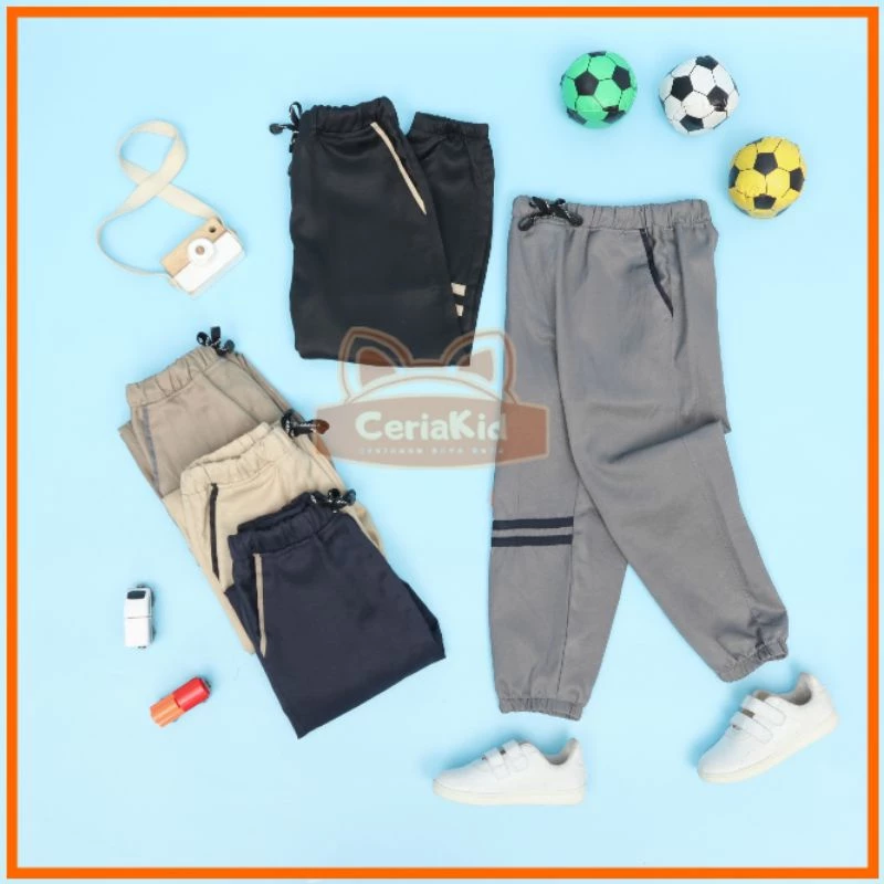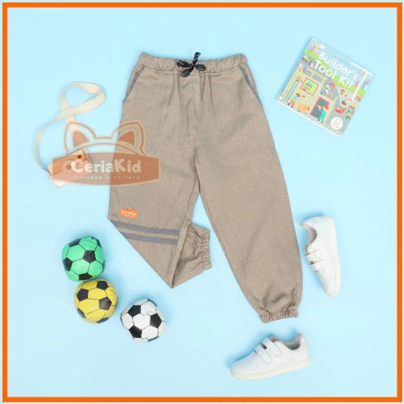 Joger anak Anak Laki laki dan Perempuan original dari ceriakid dengan detail sporty. dengan detail sporty yang keren! berbahan twill yang nggak bikin gerah karena berserat katun.